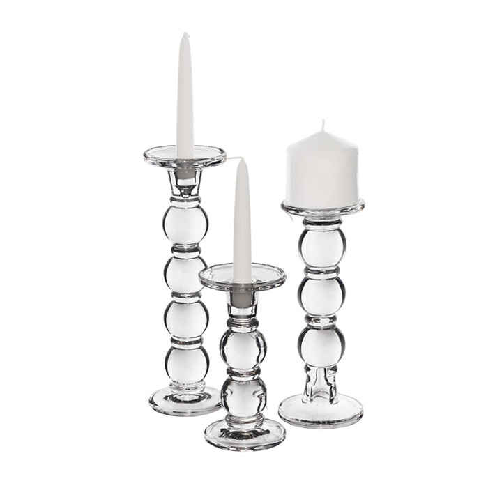 Set of 3 Bubble Glass Dual Use Pillar Taper Candle Holders, H-7.25" H-9.25" H-11.25"